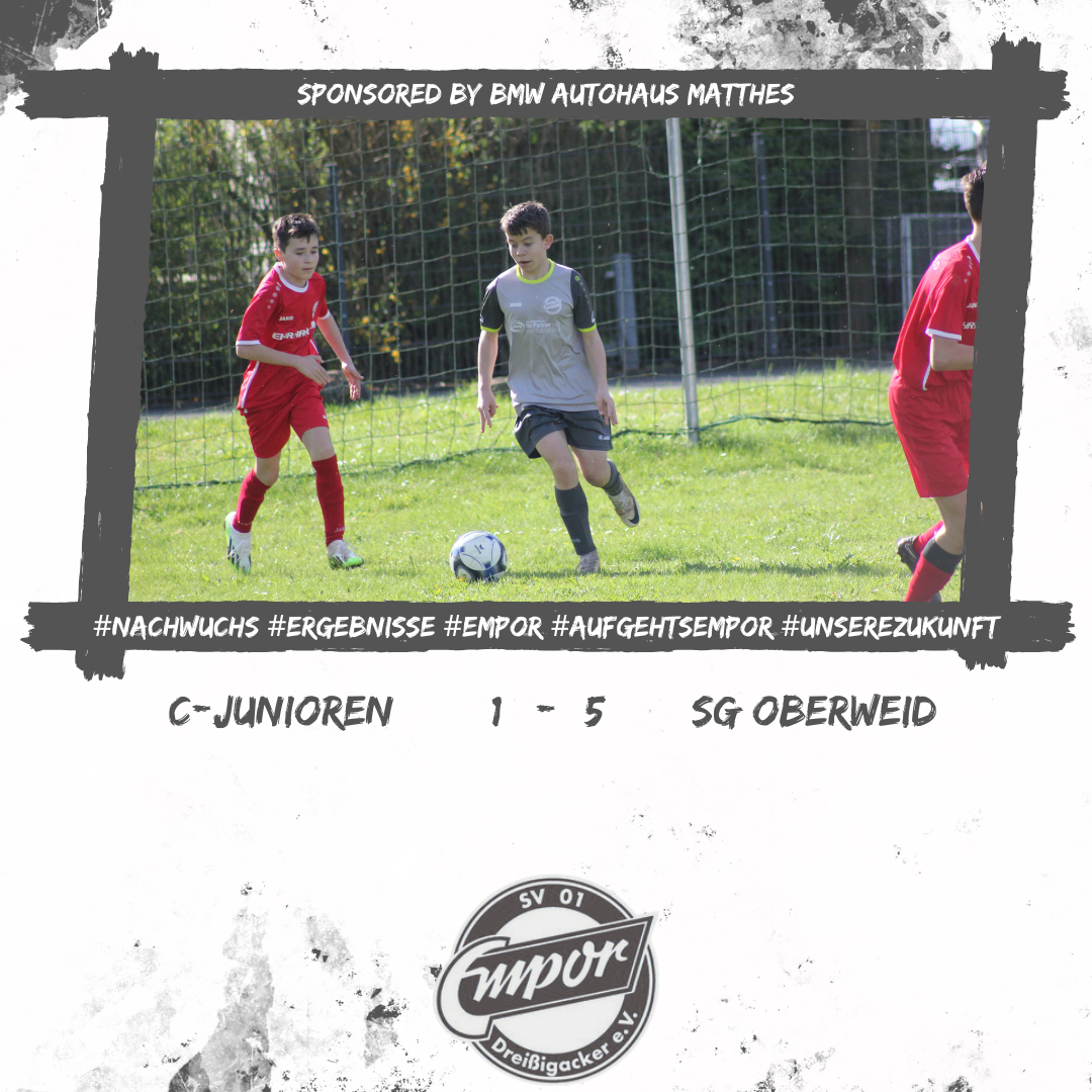 Noch sehr früh am Sonntagmorgen mussten unsere Jungs nach Oberweid aufbrechen. Mit dem Gedanken im Hinterkopf, dass ein Sieg den wahrscheinlichen Aufstieg bedeuten würde, müsste man denken, dass diese sehr junge Truppe sehr nervös sein muss. Davon war aber keine Spur sichtbar. Man brachte den Gegner ins Laufen, spielte gute Bälle hinten raus und löste einige knifflige Situation mit Bravour. Der Gastgeber auf der anderen Seite beherrscht seine eigene Stärke – das physische Spiel. Durch die Bank weg waren die Gegenspieler einen Kopf größer als unsere Mannschaft und trotzdem waren unsere Jungs souverän in der Verteidigung. Dass durch den Größenunterschied einige Gegentore fielen mussten lenkt doch von der wichtigeren Sache ab – die Jungs können kicken. Jetzt heißt es, diese Fähigkeit gegen die weniger physischen Gegner in der Restsaison immer wieder zu mobilisieren. Glückwünsche gehen an die Oberweider Spielgemeinschaft, die sich durch den Sieg für den Aufstieg qualifiziert haben.