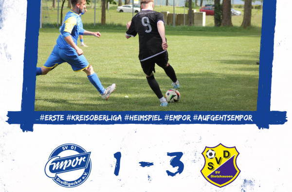 Zu Beginn der Partie kamen dabei die Gäste etwas besser in die Partie. Dreißigacker lief die Herpfer Mannschaft zwar hoch an, konnte in der Anfangsphase aber lediglich den Spielaufbau der Gäste stören. Auf dem Weg nach vorne fehlte es noch an Zielstrebigkeit, wodurch die wenigen aussichtsreichen Möglichkeiten schnell verpufften. Dem Drittplatzierten der Kreisoberliga gelang es hingegen besser, die Abwehr der Hausherren früh unter Druck zu setzen. So ging Herpf auch verdientermaßen früh in Führung, nachdem sich Zöller nach Flanke von Sondheimer von seinem Gegenspieler löste und souverän gegen Vollrath vollstreckte. Daran anknüpfen konnten die Gäste in der Folge allerdings nicht, da die Hausherren immer besser ins Spiel fanden. Insbesondere über Janusch und Stumpf wurde es immer gefährlicher für die Hintermannschaft der Gäste, die sich langsam hinten reinfallen ließen. Nachdem Janusch im weiteren Verlauf, nach Hereingabe von Stumpf, die Chance zum Ausgleich noch liegen ließ (30.), klappte es kurz darauf andersherum besser. Janusch setzte sich im Zweikampf gut durch und spielte einen hohen Ball in Richtung Tor, den der einlaufende Stumpf zum Ausgleich per Kopf verwehrten konnte (36.). Bis zur Halbzeit bot sich den Zuschauern dann eine etwas trägere Partie. Herpf begann die Abwehrkette der Empor hoch zuzustellen, wodurch Dreißigacker die Bälle nur noch lang hinten rausschlug, sehr zum Nachteil der bislang spielerisch guten Partie.